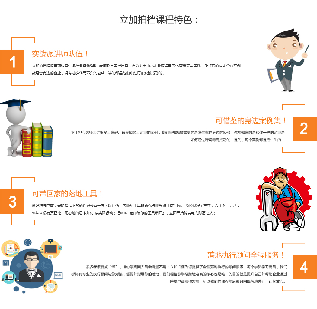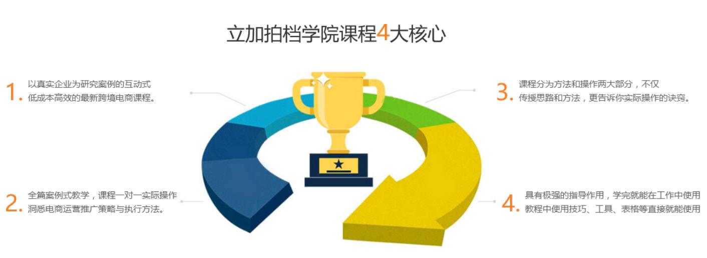 針對阿里巴巴國際站上的企業(yè)員工提供全面系統(tǒng)化的培訓(xùn)課程體系,通過系統(tǒng)化的培訓(xùn),幫助企業(yè)打造萬能的運(yùn)營操盤手,通過理論與實(shí)踐相結(jié)合,快速提升電商運(yùn)營實(shí)操系統(tǒng)化能力,為跨境企業(yè)搭建交流平臺,打造跨境精英成長基地。培訓(xùn)的內(nèi)容有:基礎(chǔ)理論學(xué)習(xí)、如何開店入駐、怎樣運(yùn)營推廣、如何選品熱賣品、怎樣搜索優(yōu)化、如何進(jìn)行流量提升和營銷轉(zhuǎn)化。課程由淺入深,循序漸進(jìn)。具體內(nèi)容如下:想開展跨境電商業(yè)務(wù),該選擇哪個平臺,具體又該怎么操作?不用怕,立加幫你講解阿里國際跨境電商平臺,教你認(rèn)識平臺的規(guī)則和操作流程,手把手教你產(chǎn)品上傳,商品分類和描述等,讓您開店無憂;跨境店鋪開好了,不知道怎么做好支付和物流管理?立加教你掌握平臺的各項(xiàng)網(wǎng)規(guī),了解物流運(yùn)營合作模式及物流服務(wù)商,并學(xué)會收款賬戶類型和收費(fèi)標(biāo)準(zhǔn)等,輕松搞定收付和物流工作;做跨境電商,沒流量,沒銷量,怎么辦?立加幫你做優(yōu)化活動策略、SEO搜索排名優(yōu)化,直通車站外引流,解讀直通車推廣策略,提升店鋪流量與轉(zhuǎn)化率!